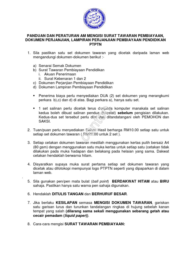 PTPTN - Peraturan Am Mengisi Dokumen Perjanjian Ujrah PDF